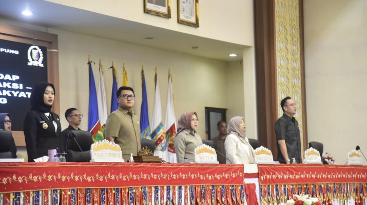 DPRD Provinsi Lampung menggelar rapat paripurna Pembicaraan Tingkat I, Jawaban Gubernur Lampung terhadap Pemandangan Umum dari fraksi-fraksi DPRD Provinsi Lampung terhadap Raperda Tentang Pertanggungjawaban Pelaksanaan APBD Provinsi Lampung Tahun Anggaran 2024 dan 2 (Dua) Raperda Prakarsa Pemerintah Provinsi Lampung yaitu Raperda Tentang Pemberian Insentif dan Kemudahan Penanaman Modal dan Raperda Tentang Rencana Pembangunan Jangka Menengah Daerah (RPJMD) Provinsi Lampung Tahun 2025-2029.