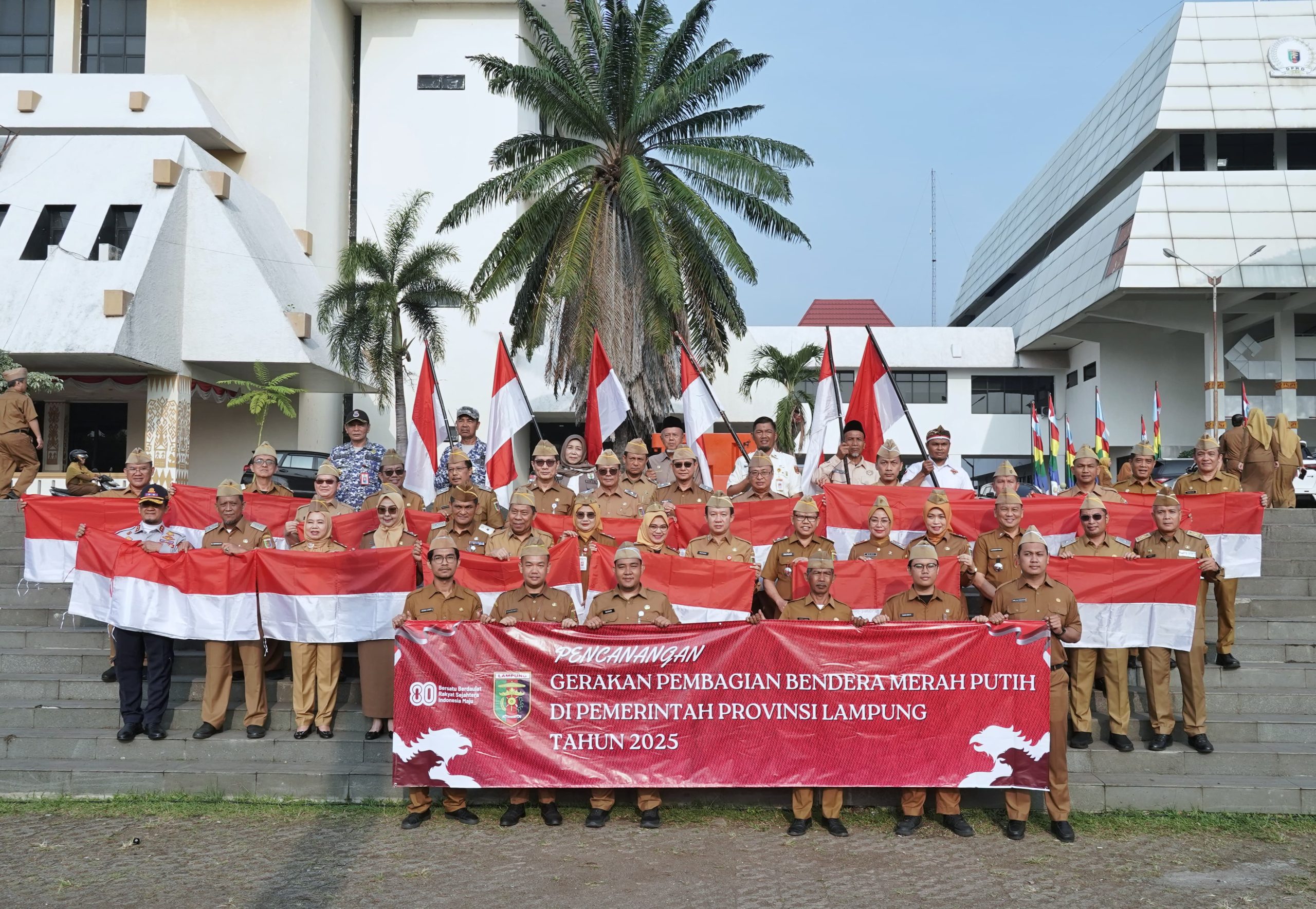 Dalam apel tersebut, Sekretaris Daerah Provinsi Lampung secara simbolis menyerahkan bendera Merah Putih kepada sejumlah perwakilan organisasi masyarakat, Pemprov Lampung membagikan lebih dari 1.000 helai bendera Merah Putih.