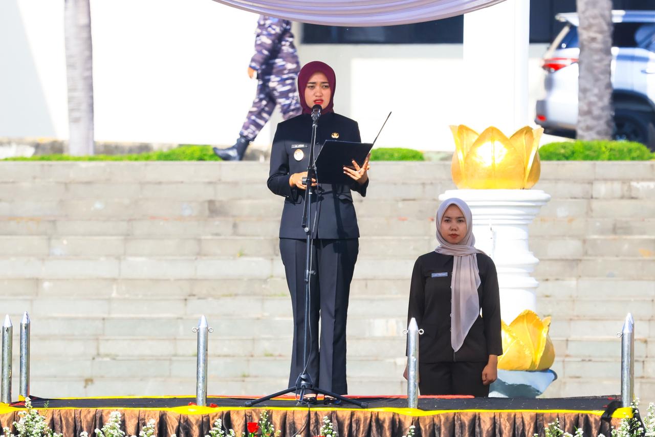 Peringatan yang mengusung tema “Pancasila Perekat Bangsa Menuju Indonesia Raya” tersebut dipimpin langsung oleh Wakil Gubernur Lampung Jihan Nurlela sebagai inspektur upacara.