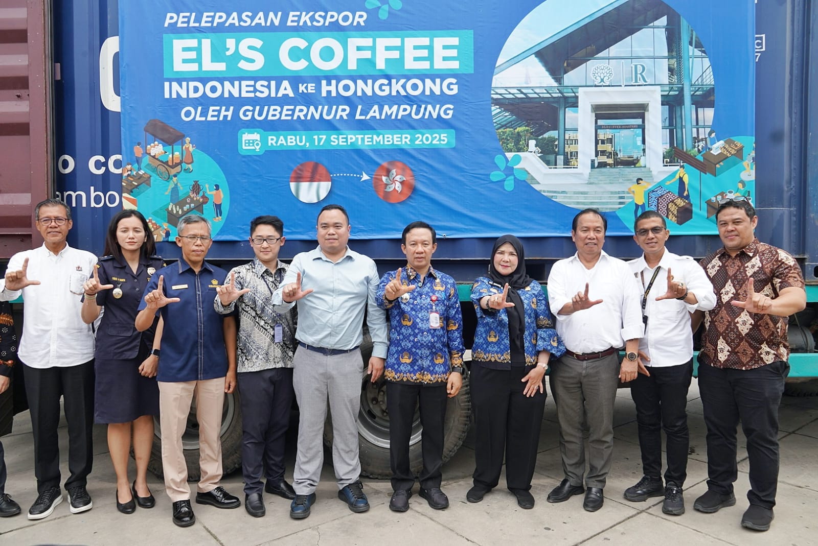 BANDARLAMPUNG – Gubernur Lampung, Rahmat Mirzani Dajusal di Wakili oleh Sekretaris Daerah Provinsi Lampung, Marindo Kurniawan melepas ekspor perdana kopi bubuk robusta Lampung ke Hongkong. Pelepasan dilakukan di halaman El’s Coffee Roastery, Bandar Lampung, Rabu, (17/09/2025).