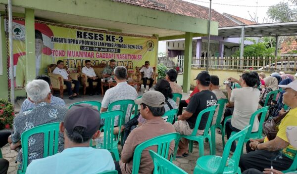 Metro — Warga Kelurahan Hadimulyo Barat, Kecamatan Metro Pusat, Kota Metro, menyampaikan sejumlah aspirasi kepada Anggota DPRD Provinsi Lampung, Tondi Muammar Gaddafi Nasution, dalam kegiatan reses yang digelar Rabu (23/07/2025).
