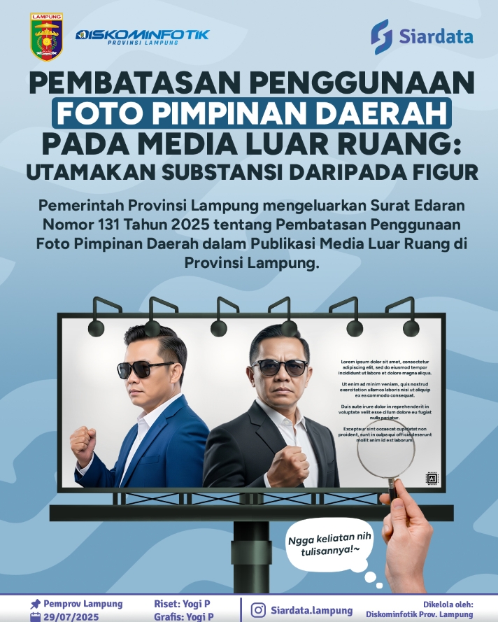 Edaran ini mengikat seluruh Perangkat Daerah dan mitra kerja mereka dalam hal publikasi di media luar ruang. Pemerintah Provinsi Lampung menyampaikan bahwa :