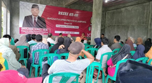 Metro — Anggota DPRD Provinsi Lampung dari Fraksi PDI Perjuangan, Solihin, menggelar kegiatan Reses di Kelurahan Yosodadi, Kecamatan Metro Timur, Kota Metro, pada Rabu (23/07/2025). Kegiatan ini dihadiri oleh aparatur kelurahan, tokoh agama, tokoh masyarakat, dan warga setempat.