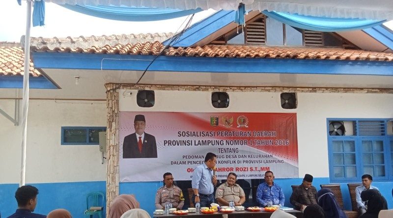 LAMPUNG SELATAN – Komitmen memperkuat harmoni sosial ditegaskan anggota DPRD Provinsi Lampung, Fahrorrozi, saat melaksanakan Sosialisasi peraturan daerah (Perda) di Desa Siring Jaha, Kecamatan Sidomulyo, Kabupaten Lampung Selatan, Jumat (6/2).