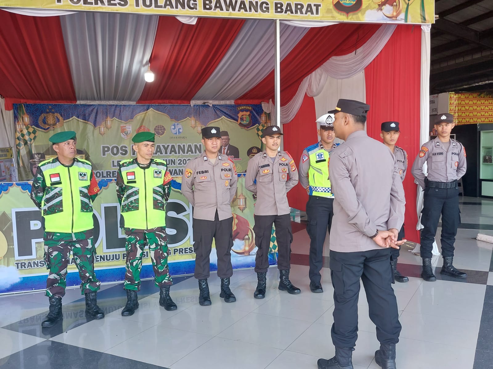 TUBABA (SB)– Personil Pos Pelayanan Lebaran Ops Krakatau 2023 di Rest Area Km 215 B Kecamatan Way Kenanga Kab. Tulang Bawang Barat melaksanakan kegiatan Apel bersama Dalam rangka Mengwujudkan sinergitas antara TNI-POLRI dalam Pelayanan arus mudik dan balik lebaran tahun 2023, Minggu (30/04/2023).pagi
